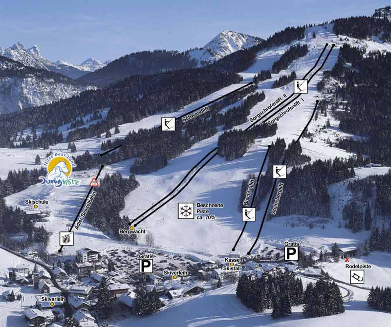 Zwei kindersichere, anfänger-freundliche 4-er Sesselbahnen am "Bischlag" und am "Adler"-Gelände bringen die Kleinen zum "N`Ice-Bear-Land" - ein neu eingerichtetes Kinder-Übungsgelände mit zwei Förderbändern, einem Übungs-Karussel Iglu und vieles mehr, was Kinderherzen höher schlagen läßt. Ein ideales Trainingsgelände für den Anfang.